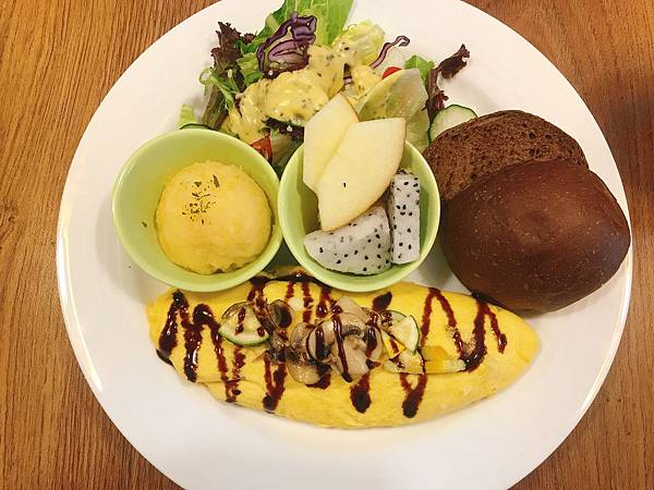 早午餐 : MIA水果法式吐司、黃金泡菜捲餅、義式蘑菇歐姆蛋、核桃芝麻燒餅